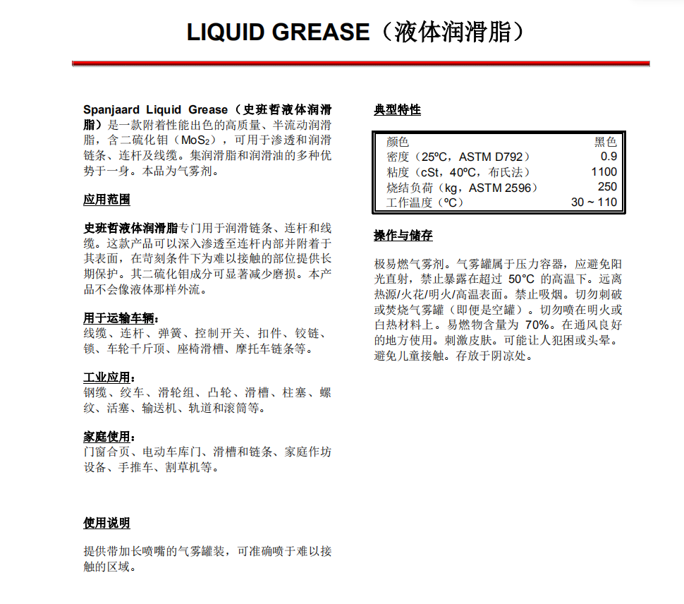 工业应用Spanjaard Liquid Grease史班哲液体润滑脂喷剂